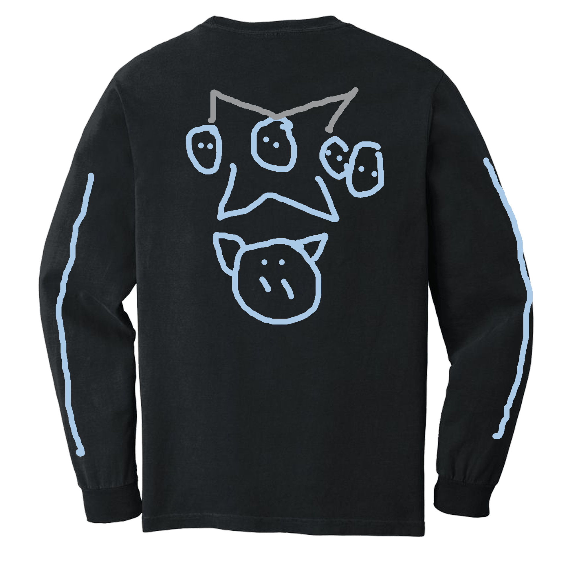 two color front , two color rear, one color sleeves screen printed on Black or Pepper Comfort Colors, Black DryBlend