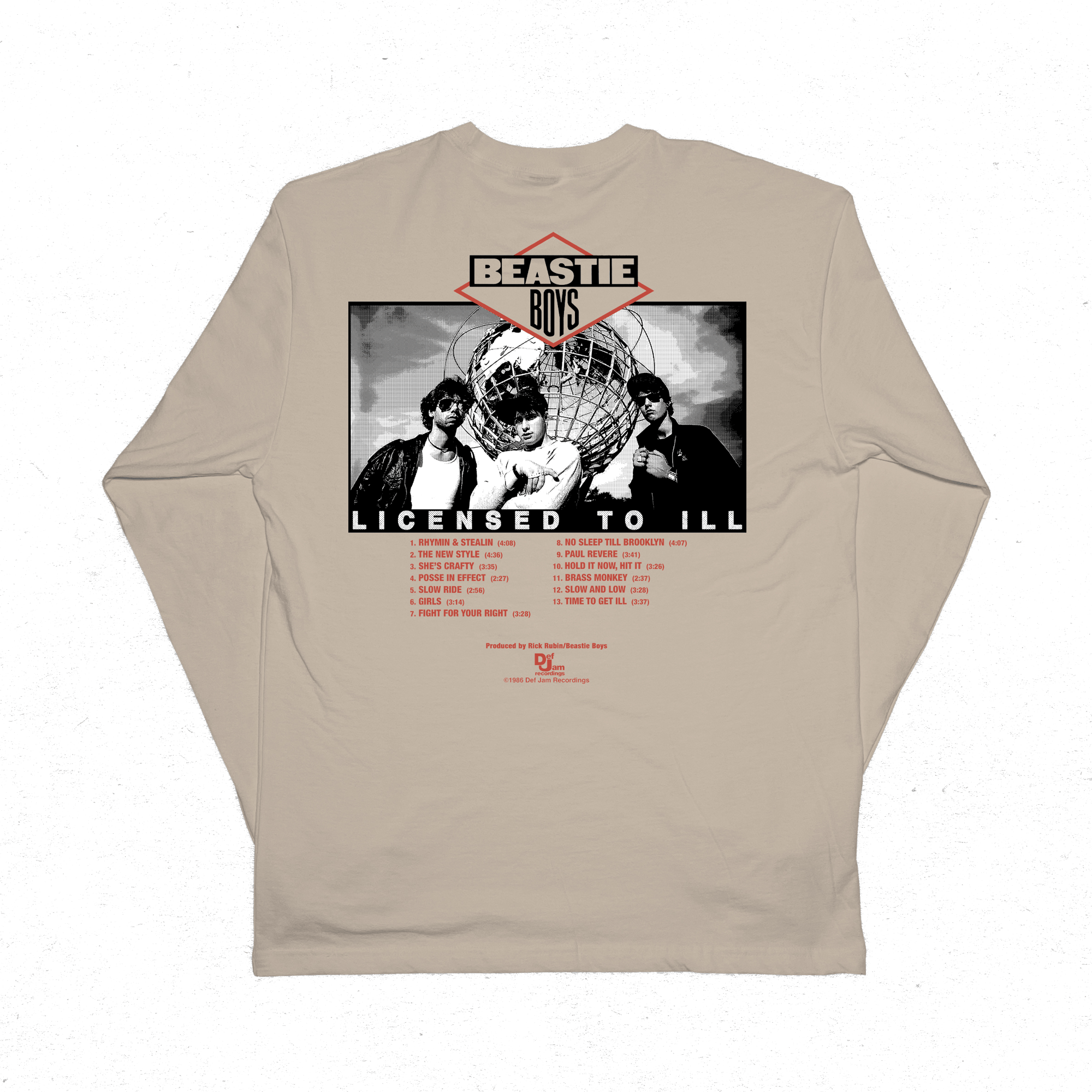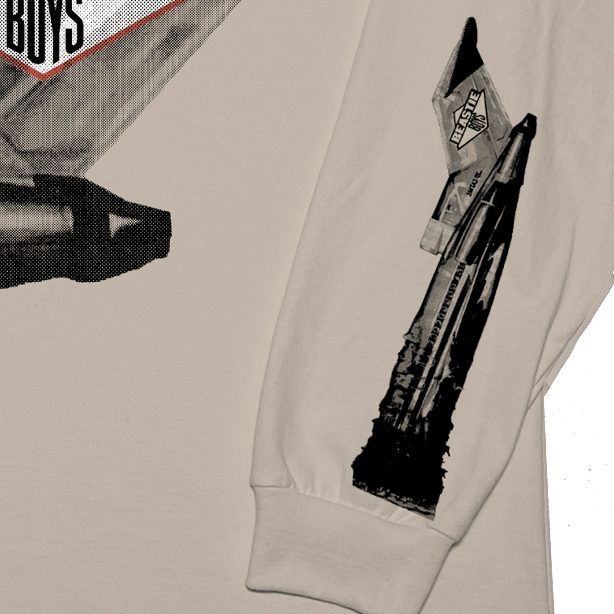 three color front , three color rear, one color sleeve screenprinted on Gildan "Sand" Longsleeves