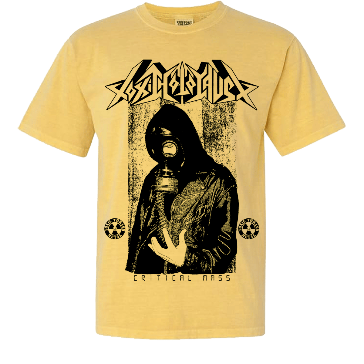 one color front, two color rear screen printed on Mustard Comfort Colors